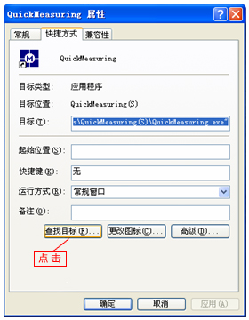 ①點(diǎn)擊軟件圖標(biāo)右鍵->選擇屬性,打開QuickMeasuring屬性框,如下圖: